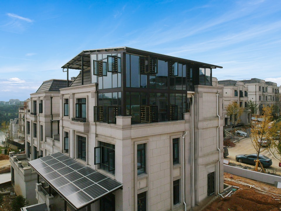 別墅陽光房是指通過將露臺封閉而形成的露臺陽光房。 陽光房可以搭建在復式樓的露臺,一樓的私人花園,樓宇的頂層,私人別墅等地。隨著生活條件的提高,人們對生活水平的要求也是越來越高,中央空調、地暖逐漸走入大家的生活內,特別是別墅業主由于房子比較大所需求的功能也更完善,滿足所有功能的運轉就需要消耗大量的電量,當然也需要支付高昂的電費。 鑫和綠色能源可以提供別墅高端定制節能陽光房屋頂發電解決方案,在為別墅業主解決用電的同時,又可以增加一層使用空間,深受客戶好評。
