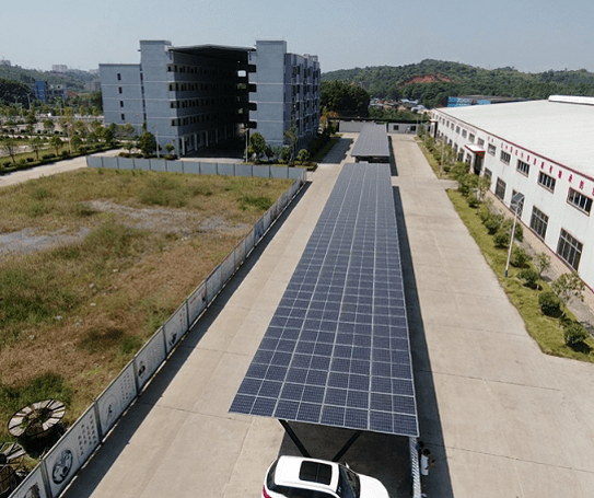 光伏車棚是將光伏發電、車棚、充電樁、新能源電動汽車相結合,利用設在棚頂的光伏組件發電,通過充電裝置儲存到蓄電池中或直接供給電動車充電使用,自發自用,余電上網。光伏車棚既能為車輛遮風擋雨,又能利用太陽能創造出清潔光伏能源供電動車充電、燈光照明和并入電網。停車發電兩不誤,在工廠園區、商業區、醫院、學校等處應用廣泛。 “光儲充”是“光伏+儲能+充電”產業的簡稱,目前該市場正成為中國儲能領域新的行業焦點,適用于電動汽車充換電站、各類停車場、住宅小區、商業中心等場所。 光伏車棚造型美觀,實用性強,節能環保,成本較低,長期收益,持續長達25年發電。光伏車棚是一種新型的發電方式,也是未來發展趨勢。